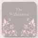 Sweet and dainty Butterfly Floral Coaster Set with a muted dusty grey background and light pink butterflies and floral vine embellishments. This elegant floral cork coaster set would complement any decor while protecting your furniture! Easy to customise, simply add the personalised text of your choosing in the text fields provided. Click on the "Customise It" button to find additional personalisation options.