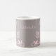 Sweet and dainty Butterfly Floral Mug with a muted dusty grey background and light pink butterflies and floral vine embellishments. This elegant floral mug is perfect for drinking your favourite hot beverage with a dash of girly flair. Easy to customise, simply add the personalised text of your choosing in the text fields provided. Click on the "Customise It" button to find additional personalisation options.