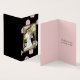Big pink cabbage roses are splashed across a black background on this modern, romantic design. The centre inset is surrounded by black heart-shaped lace. All text and images are easily customised.