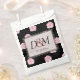Pink Cabbage Roses and Black Lace Wedding Favour Bag
