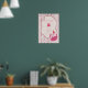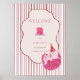 Celebrate a purr-fect first birthday with this adorable cat-themed Poster, featuring a sleepy pink kitty in a party hat, a tiny birthday cake, and a sweet striped background with a vintage-style frame.