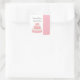 A pretty pink wedding cake with soft white icing and white flowers with green leaves. A side border of soft pink with a gentle diagonal pattern. Customise with names and wedding date as desired.