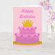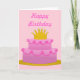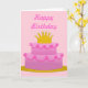 This pretty pink design has a two-layer cake with pink frosting and icing. On top is a gold crown. The front of the card says, "Happy Birthday" in pretty hot pink letters. You can change this in the template if you want.