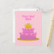 This pretty pink design has a two-layer cake with pink frosting and icing. On top is a gold crown.