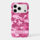 Customize this pink camouflage iPhone 17 pro case with your your name in a trendy modern CAP font in dark pink on light pink. It's so modern, girly and trendy! Perfect for any country girl!
