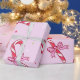 A sweet and festive artwork featuring red and white candy canes tied with bows, peppermint candies, delicate snowflakes, and scattered colorful dots on a soft pink background. The playful mix of holiday treats and winter motifs creates a cheerful, charming look filled with seasonal joy and bright, whimsical energy.