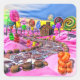 This is my Candyland design-a gingerbread house in a pink candy landscape with colourful lollipops, gummy bears, sugar canes, pralines and cotton candy by a chocolate road.
