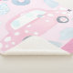 Pink car is a beautiful AI art design that shows a pink car surrounded by cute objects in baby blue colors. it is the perfect sherpa blanket for a newborn, or a special and unique gift to a mum who has a baby.