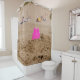 Pink castle toy in shore at daytime shower curtain