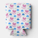 Pink Cat Paw Blue Hearts Meow Pattern Can Cooler