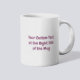 Great product, good delivery time, and an awesome idea for a gift! It was even better than I could have imagined, the customisation is incredible. The colour is perfect, it's dishwashable and microwaveable, the text print on the mug looks exactly like I wanted it to look and best of all, it's a large sized mug that you can drink plenty of coffee or whatever you want! I gifted this to my father and he loves it. He drinks coffee with that mug everyday :) I recommend.