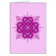 Pink textured celtic knot "quadheart" design with a heart scroll pattern and needle star background.