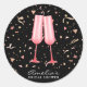 Two pink champagne glasses on a background of pink and gold confetti, these small round stickers are perfect for a bridal shower party favours, envelope seals and more. MATCHING items in our collection.