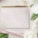 Unique wedding envelope featuring romantic pink and champagne flowers and green leaves.