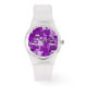 I only have one complaint. I ordered the watch with clear case and strap, and what was sent was white case and strap. I'm going to keep it because 1) it looks very nice in white, and 2) it would take too long to get a replacement made and sent in time for my occasion. Aside from the mix up with the color, the watch does look very good in white. The purple dial is actually sparkly which did not show in the online images. That was a nice surprise. If you like Swatch watches this is very similar to those. It's 33.6mm in diameter, 10.5mm thick, and 40.6mm lug to lug. Stainless steel case back says 3ATM/30m WR, so no swimming or showering or submerging this one. If you like Woodstock, this is a great choice.