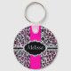 Pink Cheetah Print Diamond Monogram Key Ring