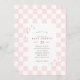 Cute and trendy baby shower invitations with a pink chequered pattern. Ideal for celebrating a baby girl.