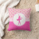 Throw pillow for dancers with a pink chequered diamonds design. A two-tone diamond pattern in the background with a pink dance graphic on top. It includes a custom text field for your name! It's the perfect room decor accent for any dancer.