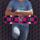 Pink Chequered Girly Skull Skateboard