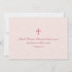 Pretty and elegant vintage style cherry or apple blossom flower branch floral and song bird Catholic First Holy Communion invitation. The colours in the invitation are shades of rose pink and blush pink with a bit a ice blue. The design features a Christian cross and Bible verse on the back. You can change the verse to whatever you'd like. You can personalise all the text on this confirmation invitation. To change the text, use the personalise options. Or to change the font, font size, font colour, or text placement, choose customise it.