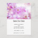 Save the date postcard with a beautiful photograph featuring pink cherry blossoms. Dreamy image with bokeh lights and sparkles.