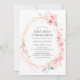Trendy watercolor pink sakura first holy communion invite with rose gold geometric frame designed to be quickly and easily customised to your event specifics.
