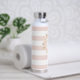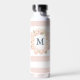 This elegant and modern water bottle features a monogram with a cherry blossom wreath on a white background with pink stripes. Personalise it for your needs. You can find matching products at my store.