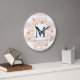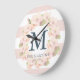 Pink Cherry Blossom Wreath Stripe Monogram Large Clock