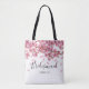 Pink Cherry Blossoms Bridesmaid Tote Bag With Name