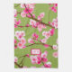 Pink Cherry Blossoms Chartreuse Green Monogrammed Tea Towel