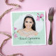 These paper party napkins are ready to be customised with your photo and your own text. Your picture is set inside an elegantly shaped frame that's accented by pink cherry blossom flowers and set against a mint green background.