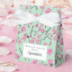 Create personalised favour boxes for quinceañera celebrations and other special events when you add your own custom text to these boxes. They have an all over pattern of pink cherry blossom flowers against a mint green background.