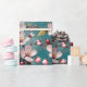 Pink Cherry Blossoms on a Teal Background Wrapping Paper