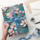 Wrap your gifts in boho charm with this stunning wrapping paper featuring delicate pink cherry blossom branches against a vibrant teal background. Perfect for spring celebrations, garden-themed events, or adding a touch of nature-inspired beauty to any occasion. Let your gifts bloom with style!