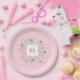 Pink Chevron Monogram Custom Paper Plates 9". Add your initial or text easily!