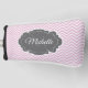 Create a unique golf gift with a Pink Chevron Personalised Golf Head Cover. Cover design features a pink chevron background and an ornate grey tag to personalise with your name and monogram. Additional items available with this design as well. Please contact me directly for assistance with personalisation.
