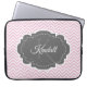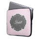 Protect your laptop with a Pink Chevron Personalised Laptop Sleeve. Laptop sleeve design features a pink chevron background and ornate grey tag to personalise with your name and monogram. Additional items available with this design as well. Please contact me directly for assistance with personalisation.