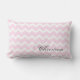 Elegant and modern light pastel blush pink and white casual and retro chevrons zigzags stripes pattern monogrammed decorative throw pillow. Fully customisable, add your name or other text for a truly unique home decor item.