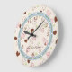 Personalise this sweet heart patterned wall clock in trendy lime green,brown and light teal colours for any little girl's or teen's room. Just edit the name text in the easy Zazzle editor. Your choice of round or square. Created in part with graphics by Zaza at www.scrapandtubes.com