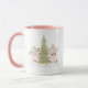 Savour a warm cup of hot cocoa, coffee, or tea while admiring an adorable Christmas illustration featuring little angels beside a snowy evergreen tree.