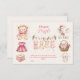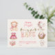 This festive baby shower design bursts with holiday charm, featuring a collage of hand-painted pink elements—from cosy clothes and nursery toys to cupcakes and a dreamy crib. Soft blush tones and watercolor textures create a playful and heartwarming atmosphere to welcome a baby girl during the holiday season.