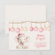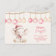 This festive baby shower design features a hand-painted baby elephant in a Santa hat, surrounded by blush pink and gold ornaments dangling from rustic twine. Soft watercolor textures and sweet holiday tones create a cosy, whimsical atmosphere — perfect for celebrating a winter baby girl with warmth and charm.