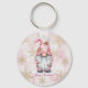 Pink Christmas Gnome Gold Snowflakes Key Ring