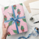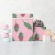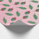 Pink Christmas Green Holly Red Berries Holiday Wrapping Paper