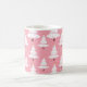 A cute hand drawn pink Christmas mug with a snow filled Christmas trees, stars and snowflakes. Pink Christmas kitchen decor