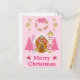 Pink Christmas Nutcracker and Gingerbread House Holiday Postcard