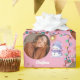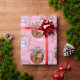 Pink Christmas one circle photo and name snowman Wrapping Paper