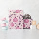 Celebrate the holiday season with this charming 2D pattern featuring pink Christmas ornaments and delicate winter foliage, set against a soft pastel pink background. The ornaments vary in shape and size, each decorated with simple white dots and lines, evoking a hand-painted feel. Sprigs of pine and berry-like branches in muted shades of dark purple, lavender, and red are interspersed among the ornaments, adding seasonal cheer. A soft watercolor texture throughout creates a cosy and whimsical atmosphere, while small scattered dots in matching pink tones provide depth and balance. Perfect for festive fabric, gift wrap, or holiday-themed decor, this design is light, cheerful, and full of holiday magic.