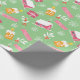 Pink Christmas Pattern With Green Background Wrapping Paper
