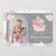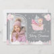 Pink Christmas Tree Cute Teddy Arch Photo Grey Holiday Card